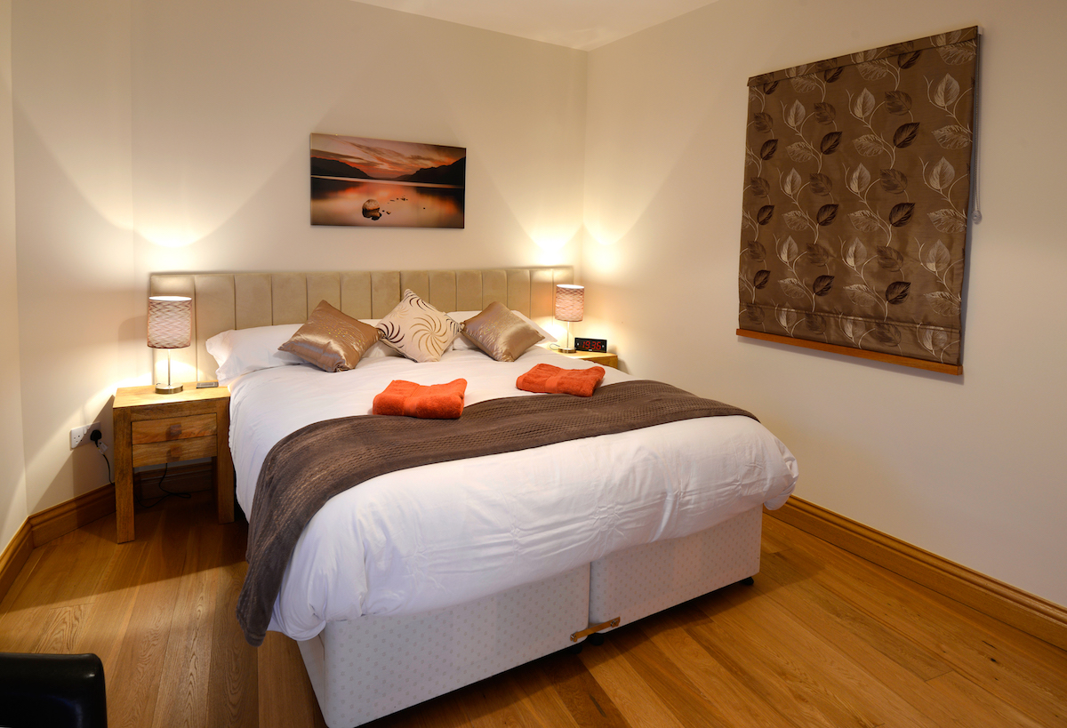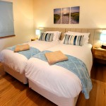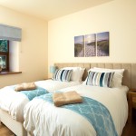 Available as either a Super Kingsize bed or twin beds (please state preference when booking). Fitted wardrobes (with shelving, drawers and hanging space), dressing table, flatscreen TV/DVD, radio alarm clock and hairdryer.